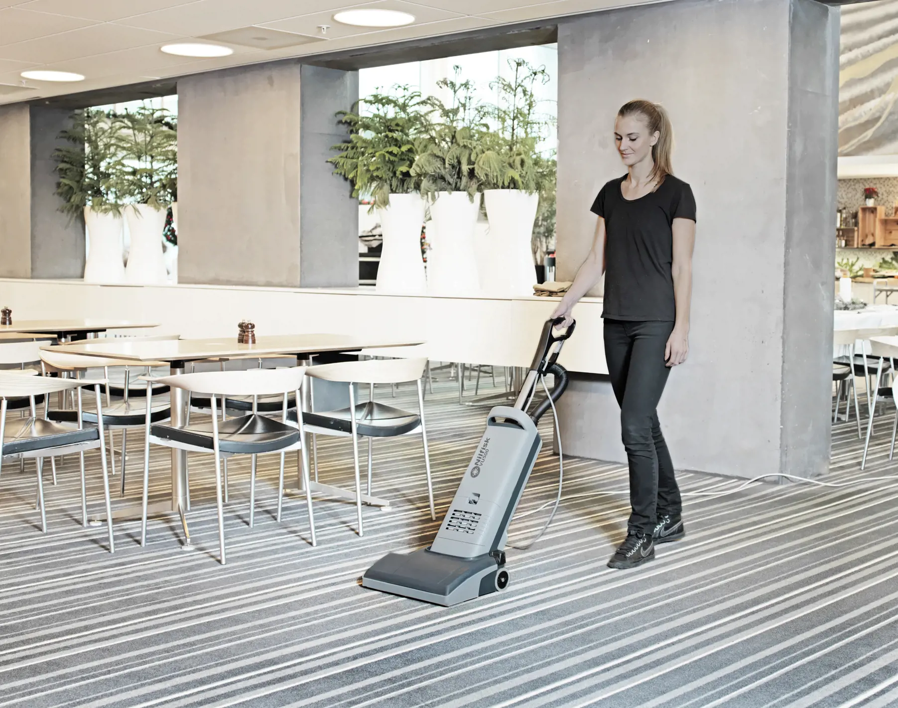 Automatic, self-adjusting brush height ensures proper cleaning performance and maximum productivity especially when cleaning medium and low cut carpets.
