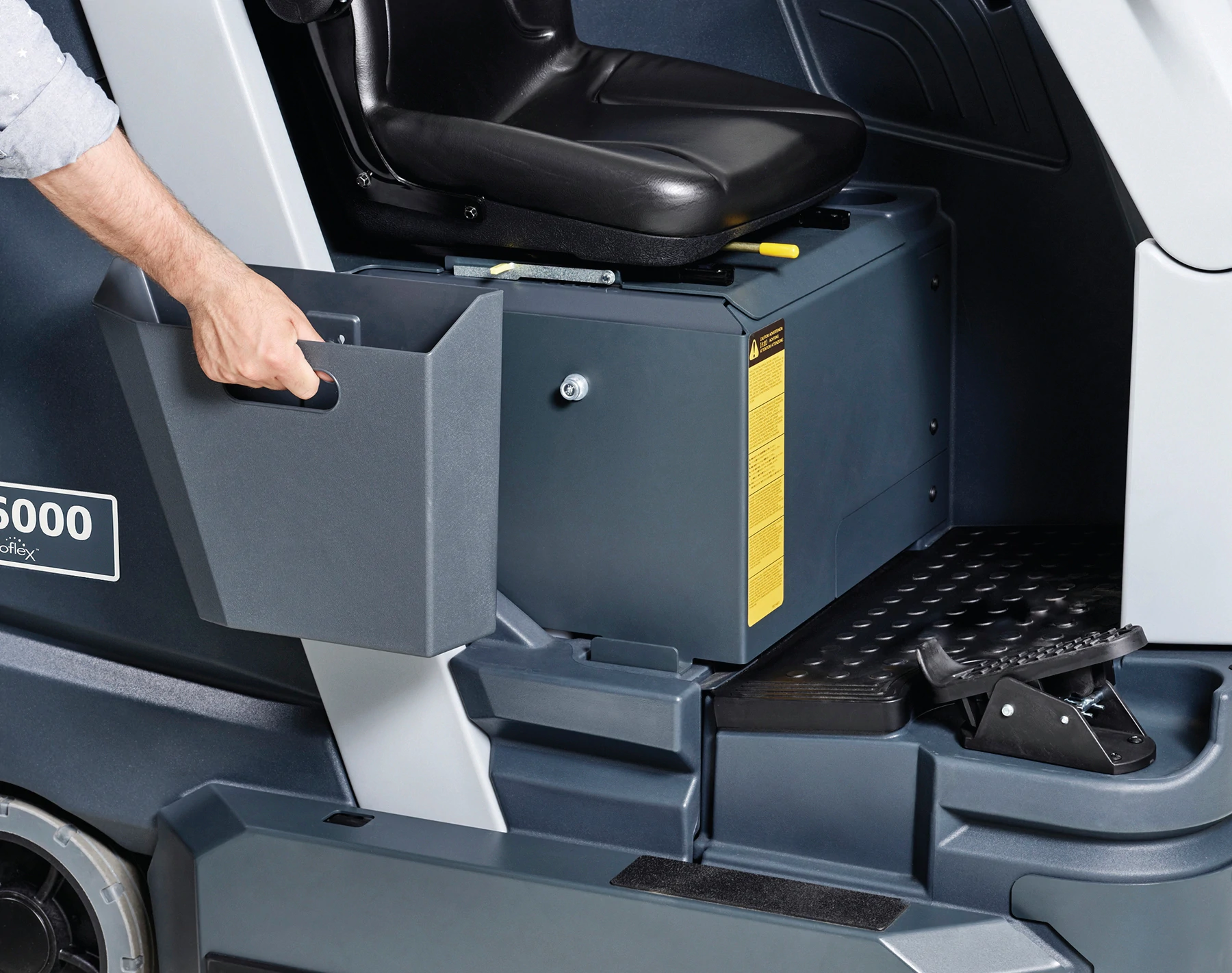 The Nilfisk SC6000 rider floor scrubber provides 30% greater run time and productivity than the nearest competitor in its class, so it can clean even the largest, most challenging spaces quickly, efficiently, and at a low total cost of ownership. It’s available in both disc (34” or 40”) and cylindrical (36”) versions and features our most advanced cleaning technologies, including our patented EcoFlexTM detergent management system for green cleaning and our patented DustGuardTM misting system for complete dust control.