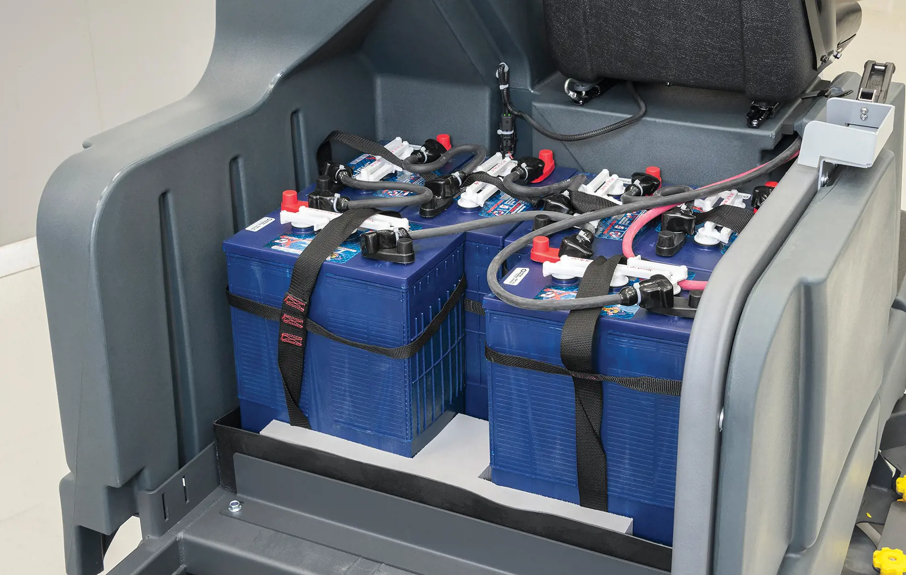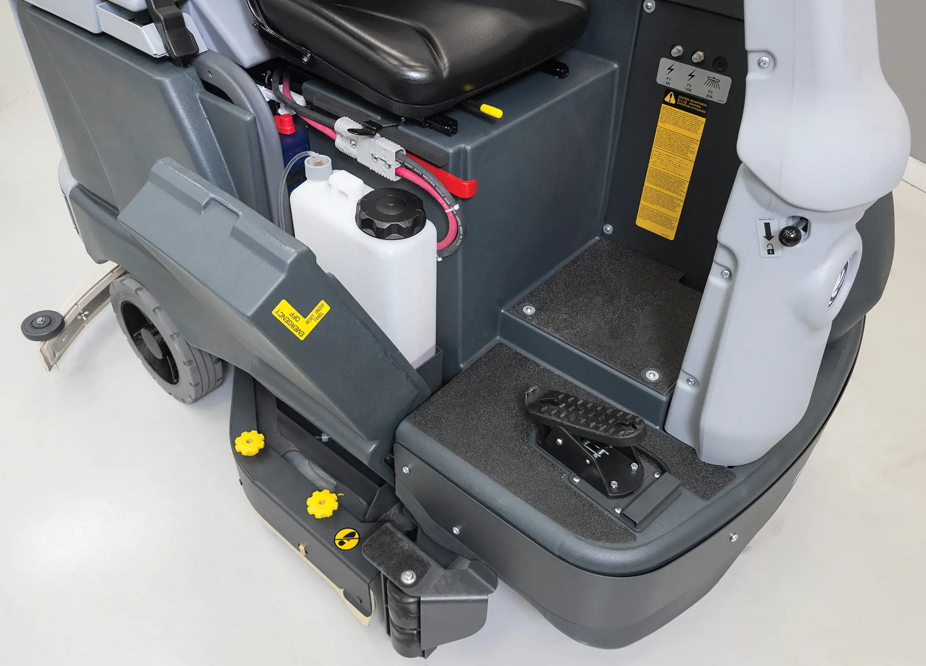 - Invest in a floor scrubber that’s built to last — industrial bumper, frame-mounted deck protection and high-strength tubular, steel construction