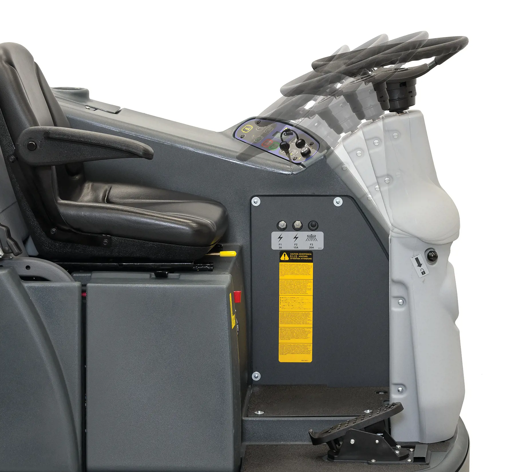 - Clean floors in a single pass thanks to the high-power scrub deck powered by dual 1.5 hp motors