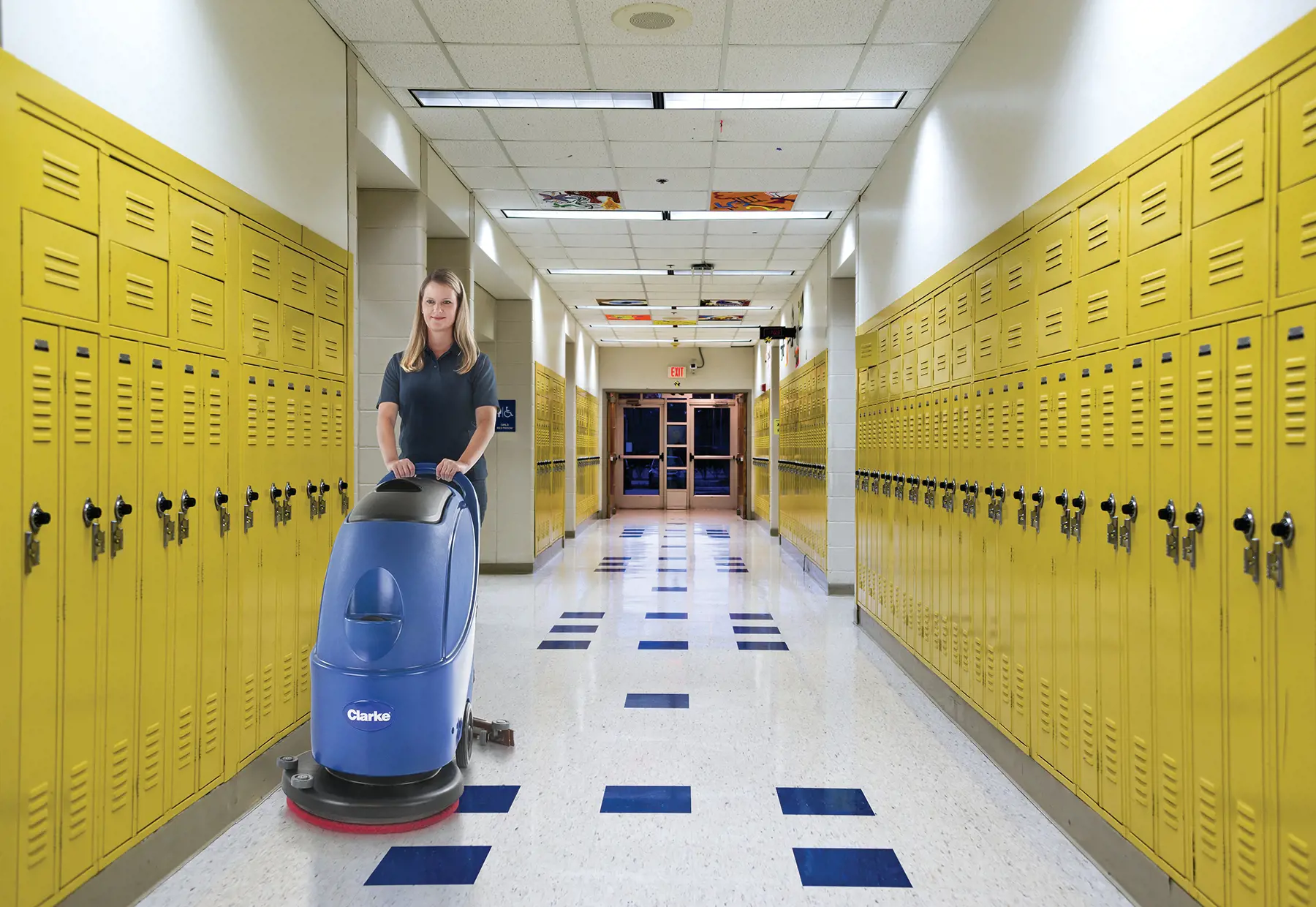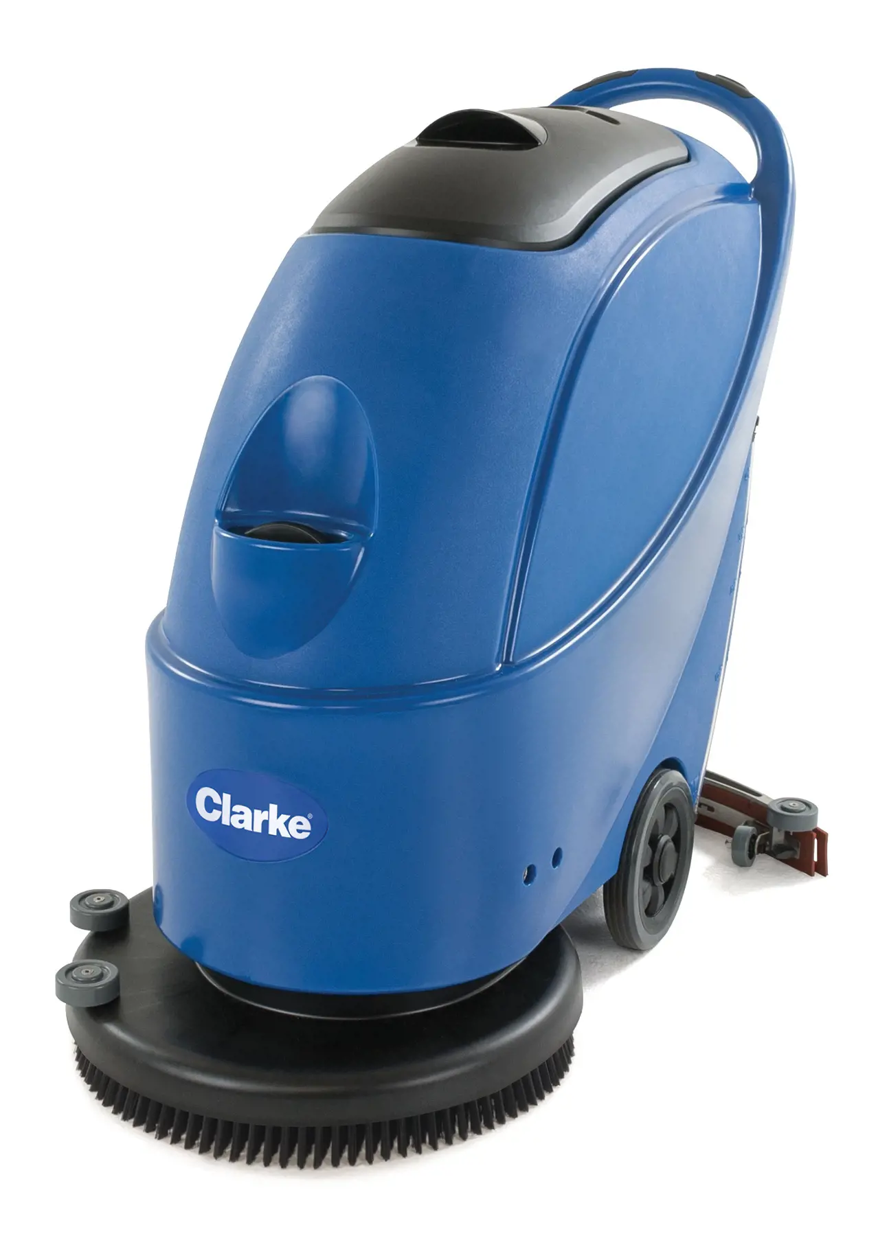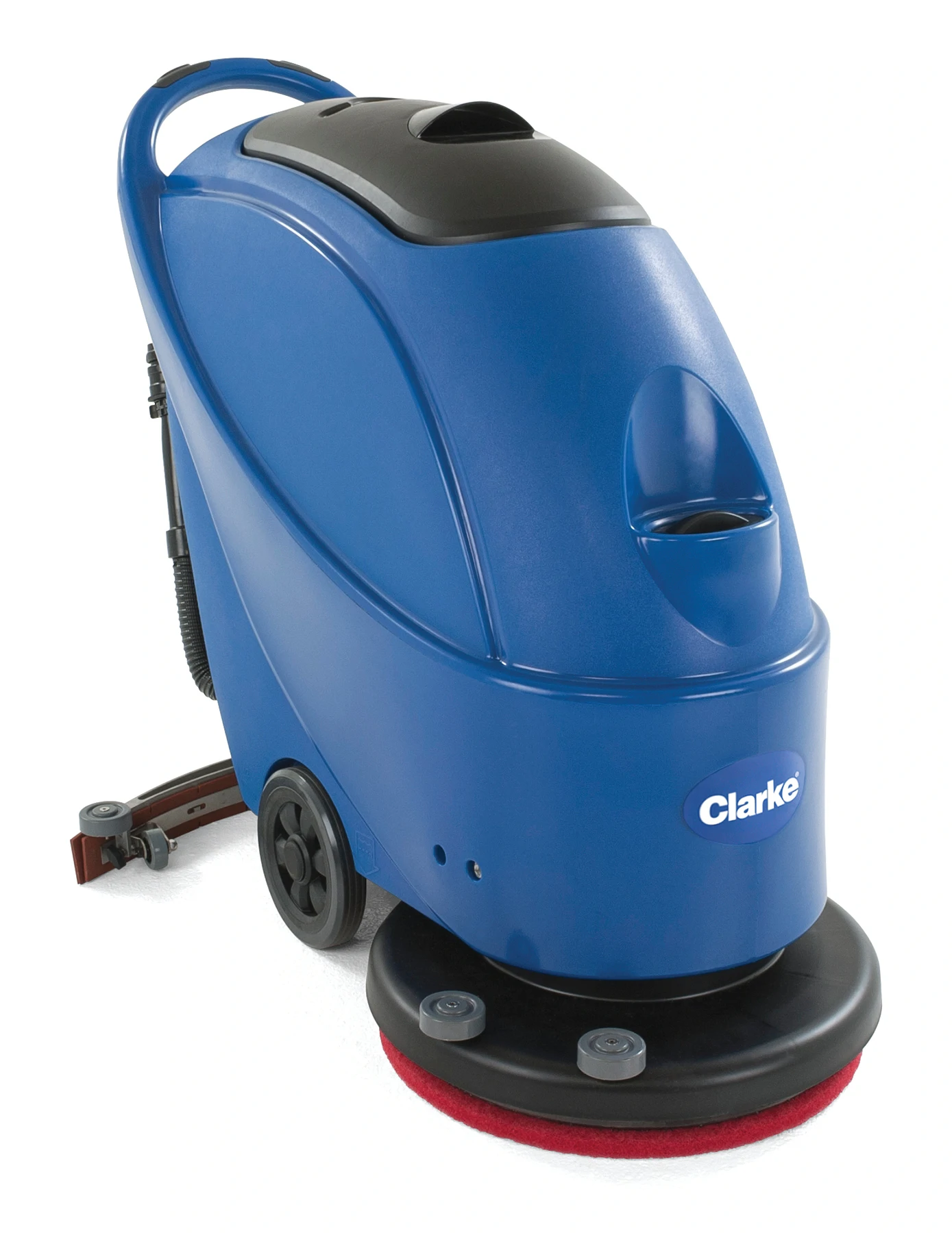 The Clarke CA30 ™ 20B combines a 20 inch wide cleaning path with a long-lasting onboard battery and charger. That means you can clean faster without having to worry about the nearest wall outlet or looking for the charger when the job is done.