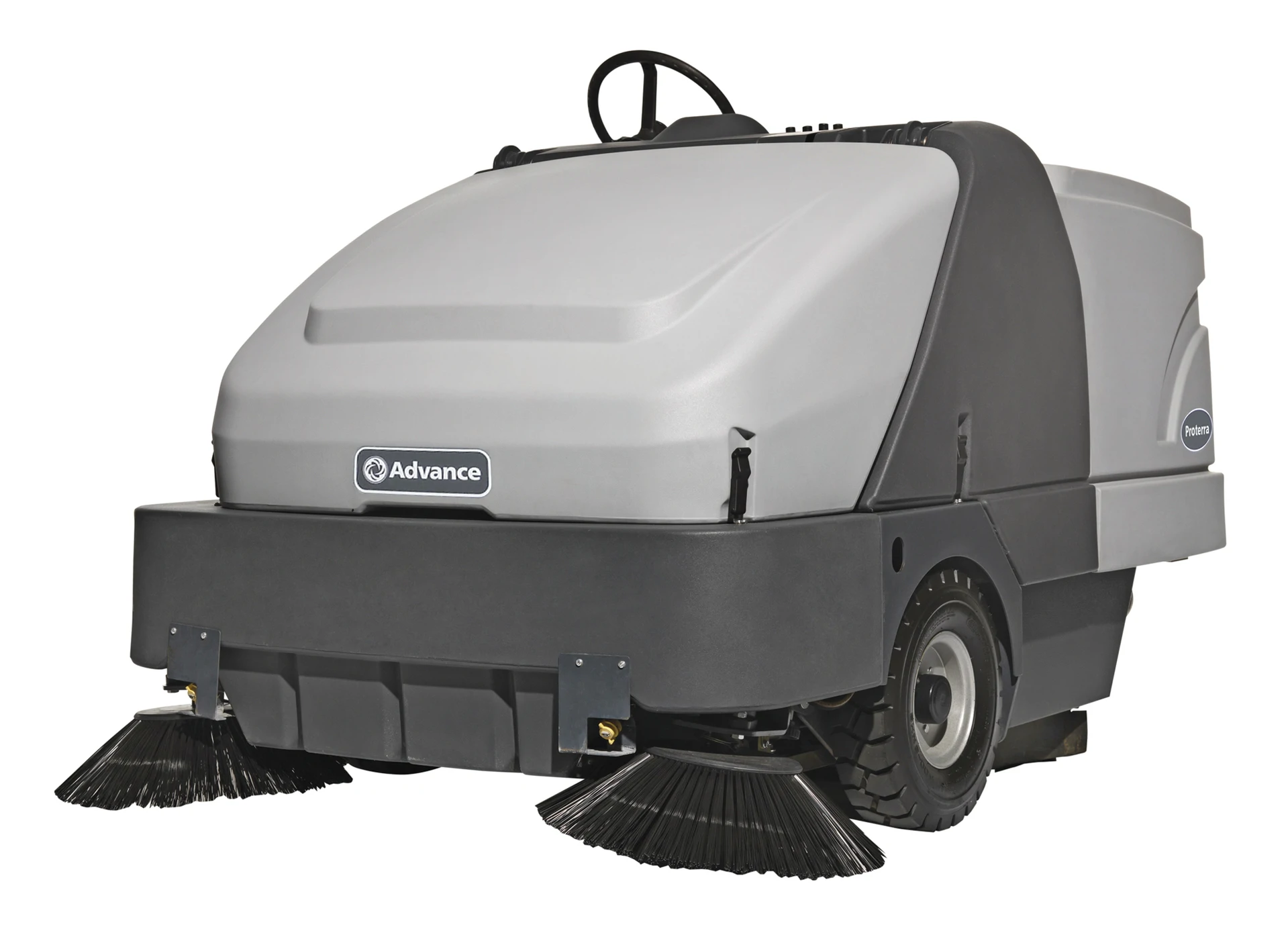 With its wide 64” sweeping path, exceptional maneuverability and high capacity hopper, the Proterra™ Industrial Rider Sweeper will make fast work of large sweeping jobs in factories, warehouses, parking garages, foundries and more.