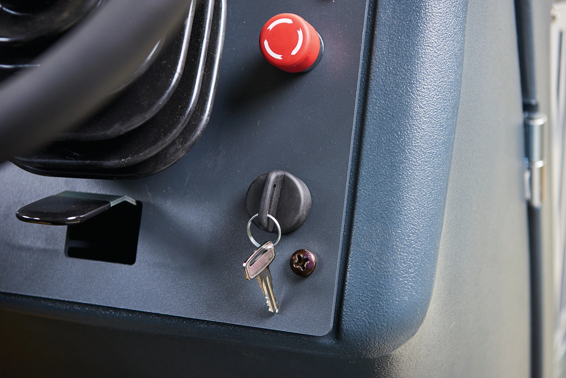 - Ensure operator safety with our Clear-View™ design, automatic speed reduction in turns and seat-accessible hopper safety prop rod