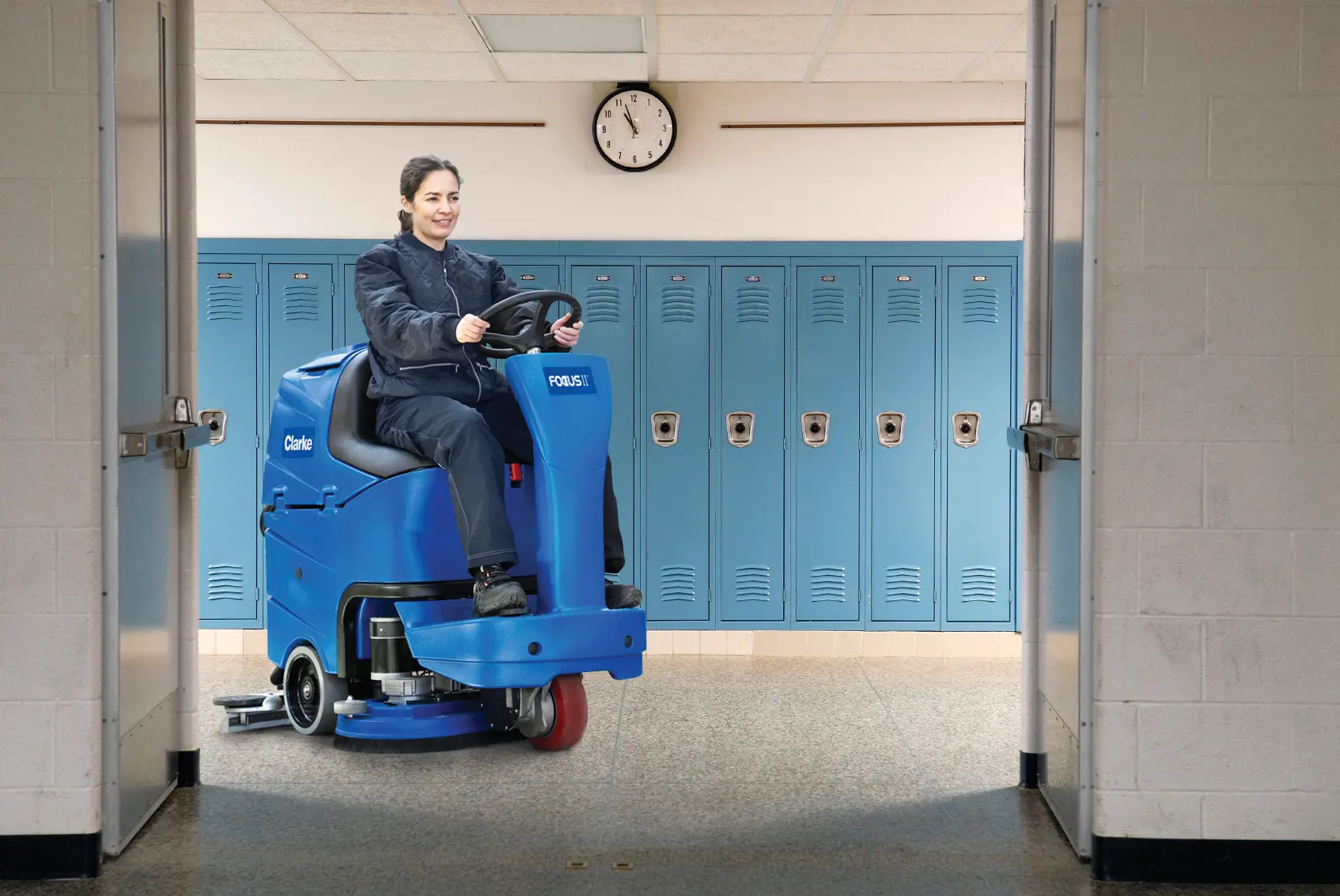 Everything you need in a compact rider The Clarke® Focus® II MicroRider™ Floor Scrubber is a small, easily maneuverable scrubber designed to clean areas inaccessible to larger riders. Yet, with a 26- or 28-inch deck, its wide scrubbing path can cut cleaning time in larger areas.