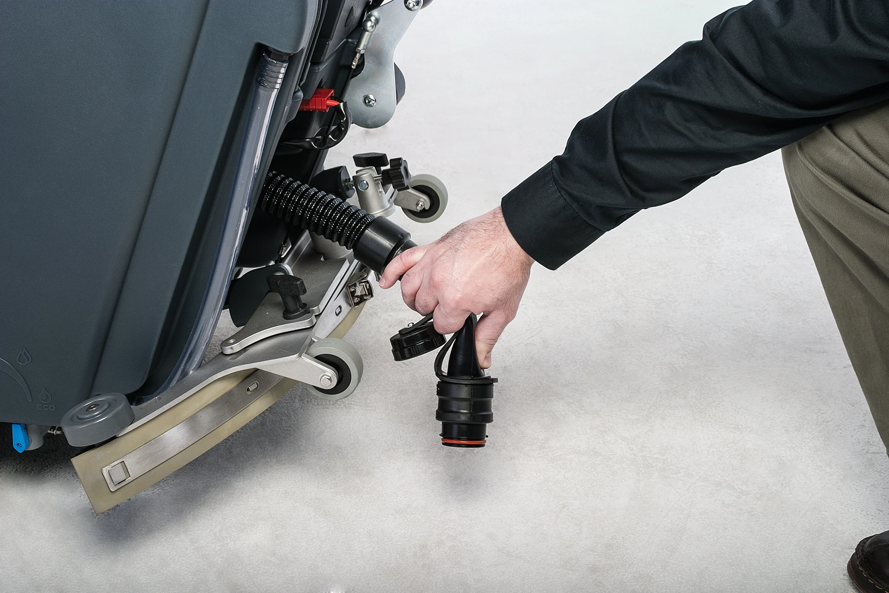 Simplify operation and minimize user training thanks to the intuitive, easy-to-use controls, including on/off safety switch on the handle Increase your cleaning productivity and meet green-cleaning standards with Solution Control™, plus 10.5 gal. solution tank and 11.9 gal. recovery tank Work during the day or in noise sensitive areas with a low operating sound level of only 68 dB A (meets LEED-EB and GS-42 noise standards) Improve maintenance with open access to critical components, easy-to-access recovery tank and squeegee blade that can be removed or rotated without tools Minimize operator labor with pad assist, which pulls the machine across the floor during operation