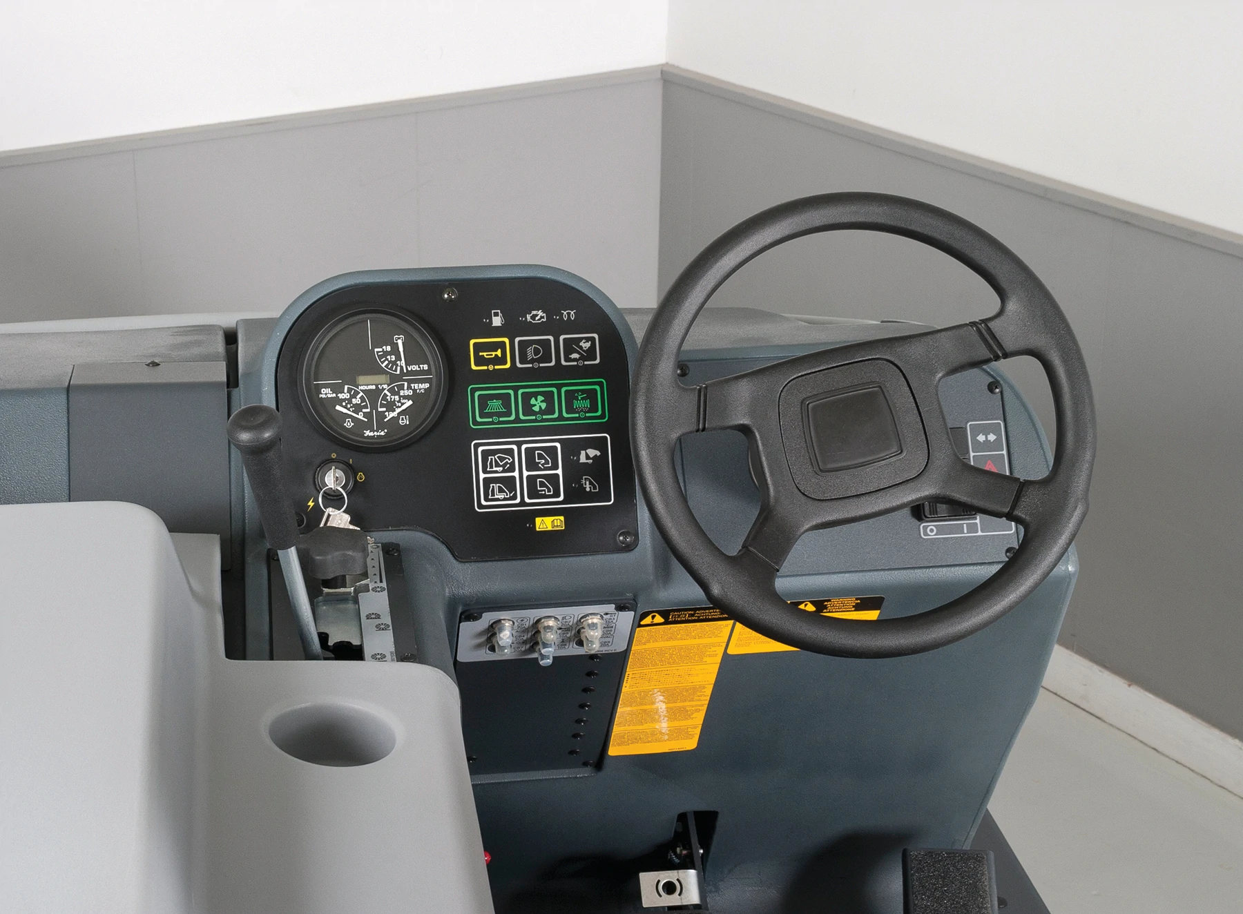 - Simplify operation and maximize efficiency — every major function, including brooms and dust control, can be activated from the cab