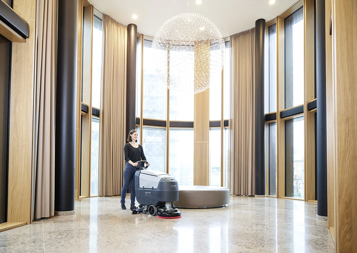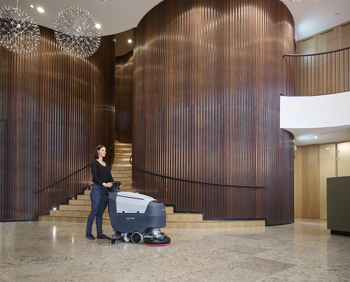 Kompakti ja erittäin ketterä kävellen ohjattava SC401 -yhdistelmäkone on nopea, täsmällinen ja helppokäyttöinen ratkaisu lattioiden puhdistamiseen. Ratkaisua täydentää tehokkaan koneen äärimmäisen matala äänitaso, jonka ansiosta se sopii päiväsiivoukseen myös meluherkissä tiloissa.