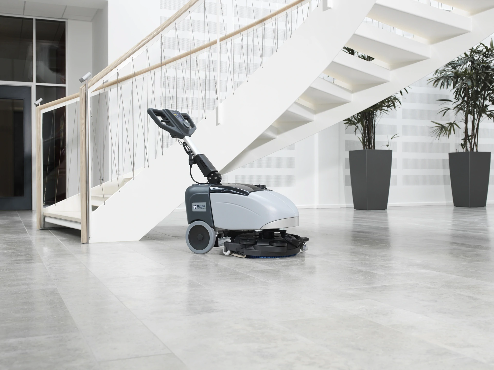 SC351-yhdistelmäkone mahdollistaa puhdistuksen eteen- ja taaksepäin 27 kg:n harjapaineella. Tämä ominaisuus on kätevä puhdistettaessa ahtaita paikkoja kuten pöytien välissä ja myös hyllyjen, huonekalujen sekä muiden esteiden lähettyvillä.