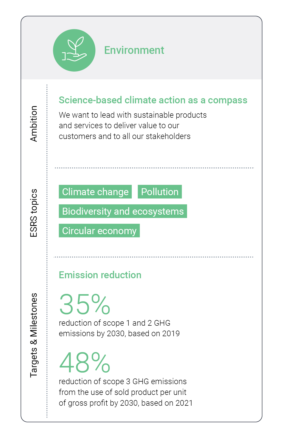 Our latest Sustainability report covers the financial year 2023. We have set new ambitious targets for sustainability and plan to be leading the way on environmental, social, and governance-related matters.