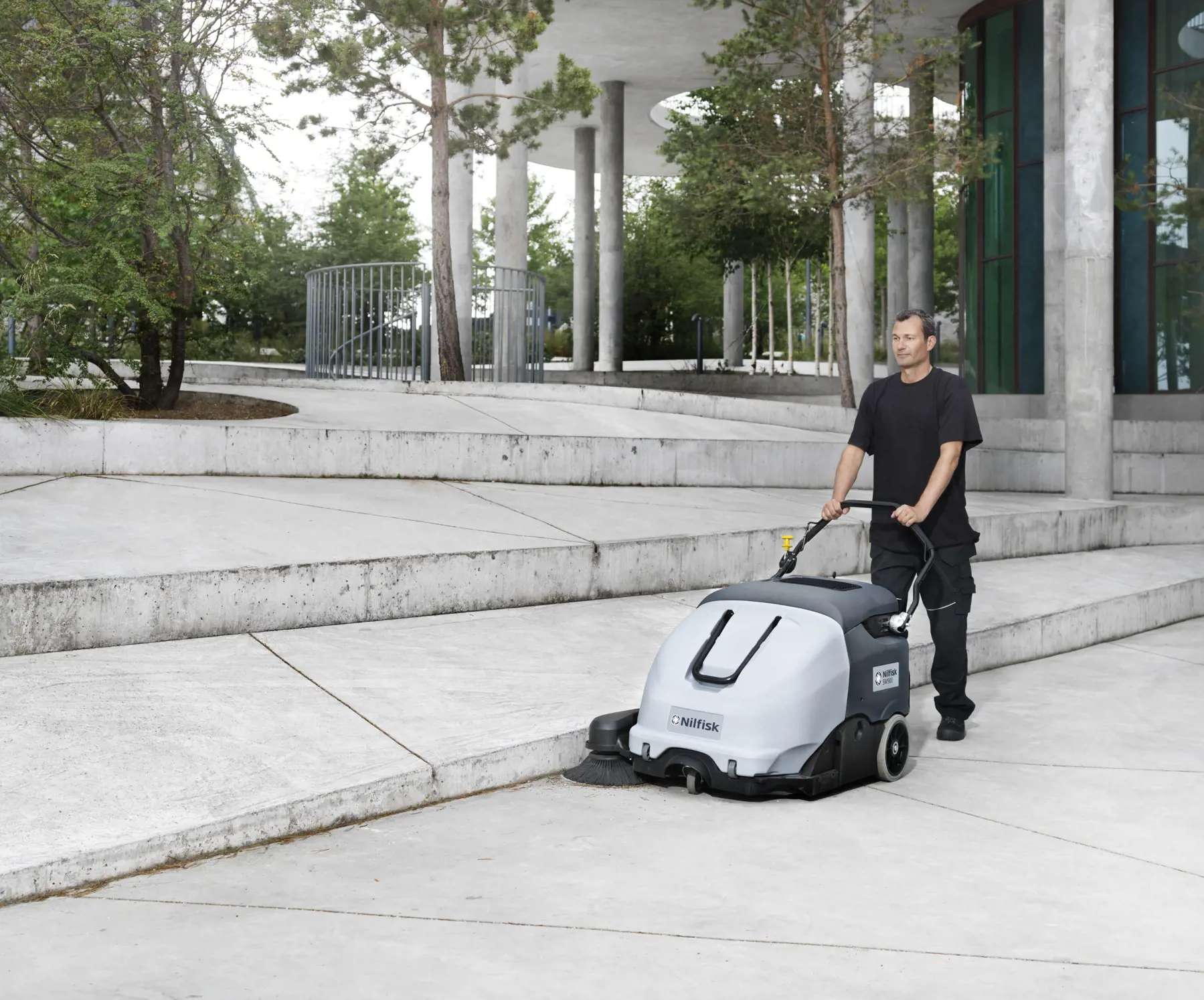 SW900 walk-behind sweeper for both indoor and outdoor use offers dust free removal of dry debris. It will increase your everyday productivity through new valuable benefits: Total control from operator position, improved ergonomics with hopper on wheels, and higher cleaning performance.