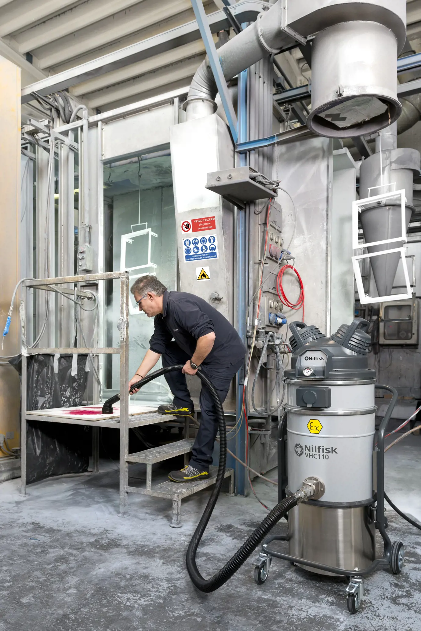 VHC110 is an easy to use compressed air industrial vacuum. Conceived to be used where electricity is unavailable or forbidden, by for example the ATEX directives. It is equipped with a new technology of multistage vacuum generator system and available both for standard and ATEX-compliant versions.