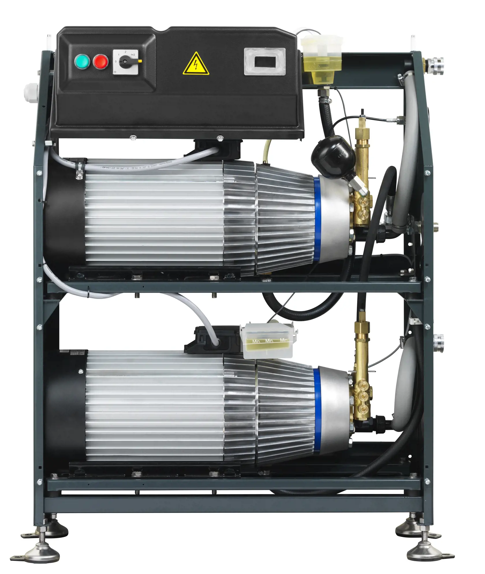 Stationary 2-pump high pressure washers for heavy cleaning tasks