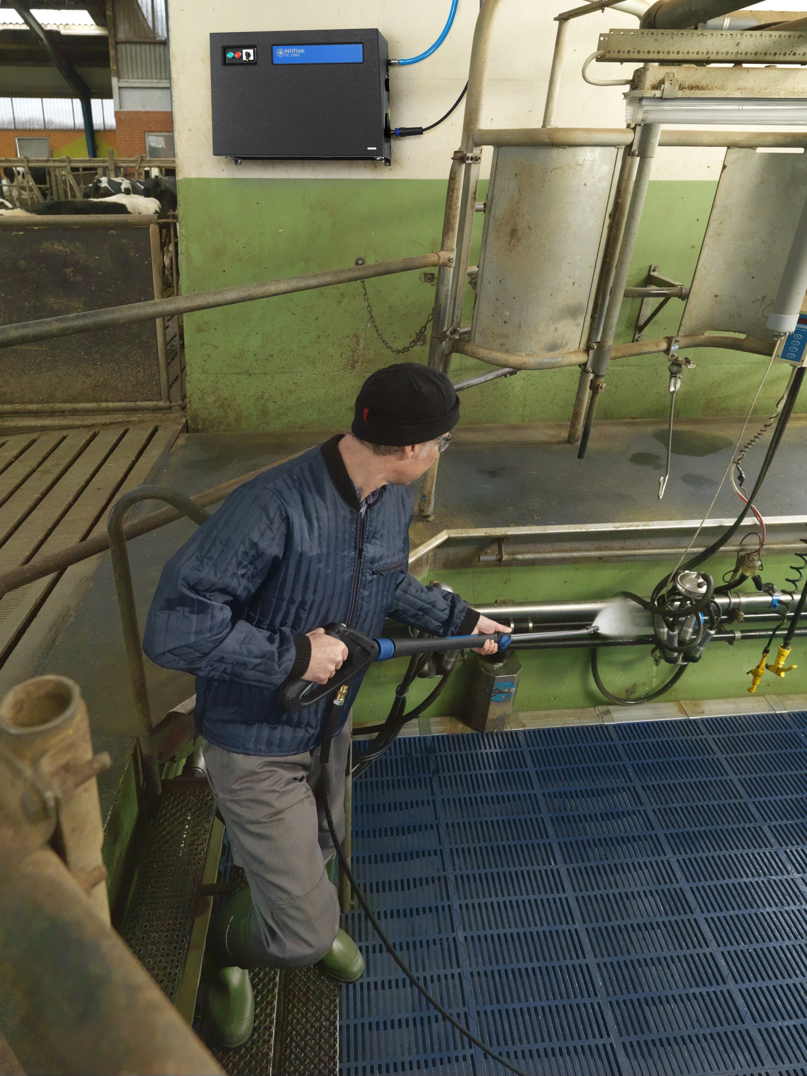 - The industrial pumps make it possible to feed the units with hot inlet water from 70°C (with break tank) to 85°C (direct feed) for max. cleaning efficiency
