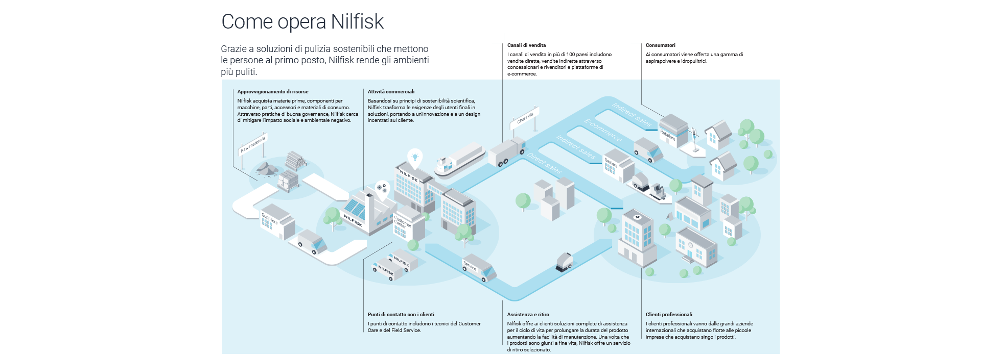 Nilfisk fa parte di Sedex, un'organizzazione globale che si occupa di migliorare le pratiche commerciali etiche e responsabili nelle catene di fornitura globali.
