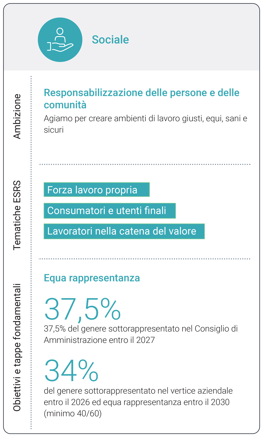 La sostenibilità è radicata nella nostra strategia aziendale e quindi integrata in tutte le nostre attività. Ci impegniamo a raggiungere quattro priorità di sostenibilità basate su argomenti rilevanti, diritti umani fondamentali e obiettivi di sviluppo sostenibile delle Nazioni Unite (SDG).