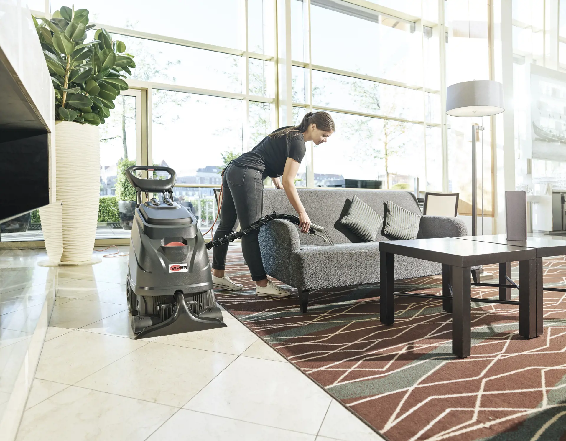 CEX410 je profesionálny, samostatný a tichý vysávač kobercov. Vďaka jeho vynikajúcemu čistiacemu výkonu môžete efektívne a jednoducho udržiavať textílie, ako sú koberce a čalúnenie. Výkonný sací motor zabezpečuje sušenie v krátkom čase.