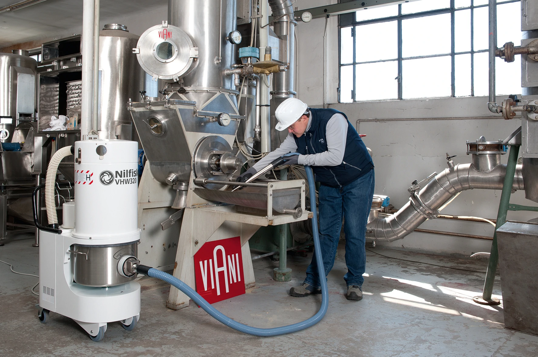 VHW320, üretim hatlarında entegre olarak veya temizlik ve bakım amacıyla ayrıca kullanılabilecek mükemmel bir multifonksiyonel endüstriyel vakum makinesidir.