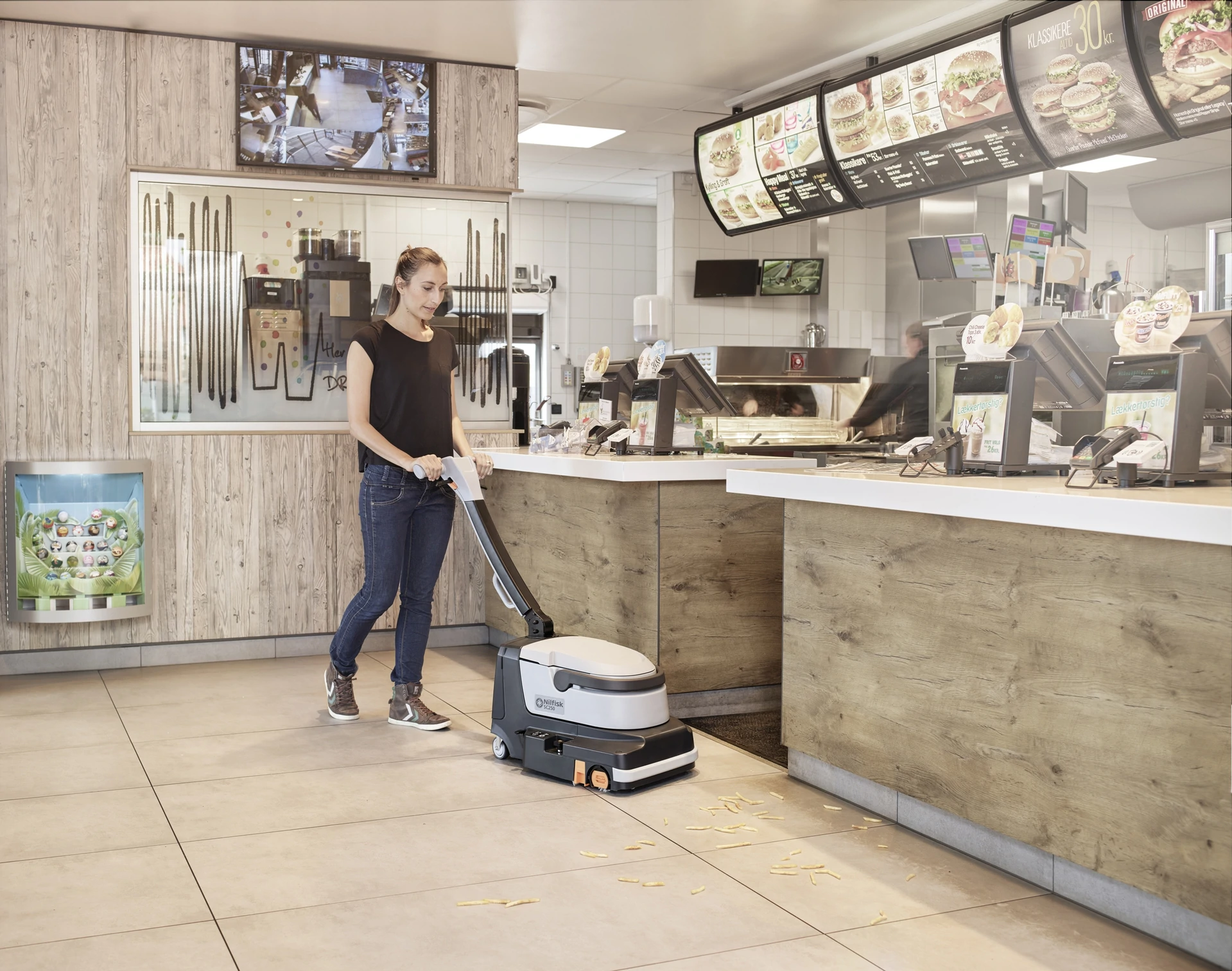 SC250, en dip köşeleri bile tek geçişte süpürür, yıkar ve kurutur