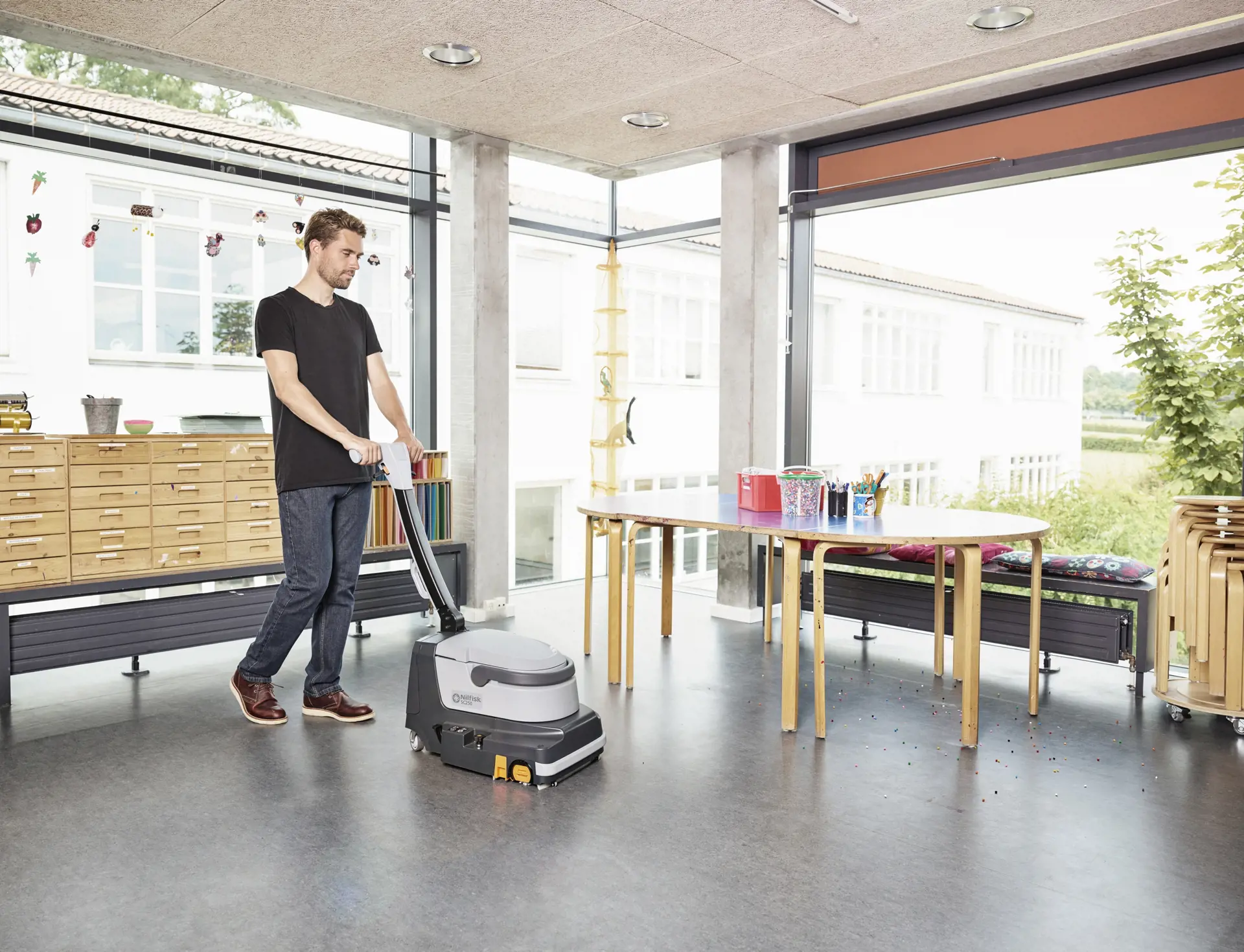 Nilfisk SC250, sert zeminlerin hızlı ve etkili bir şekilde temizlenmesini sağlayan küçük boyutlara sahip bir zemin otomatıdır. Size etrafınızdaki nesnelerin altlarına ve dar köşelere rahat ulaşabileceğiniz, ileri ve geri yönde temizlik yapabileceğiniz bir çözüm sunar. SC250'nin akülü sistemi ile mesai saatleri içerisinde etraftaki kişileri rahatsız etmeden temizlik yapabileceğiniz, hafif ve üretken bir makineye sahip olacaksınız. Okullar, restoranlar, kafeler, oteller, fast food zincirleri, temizlik şirketleri, vb. için nokta atışı bir tercihtir.